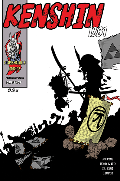 Cover Art and Design: Jessie W Craig Story and Art: Jessie W Craig Lettering and Editing: Sherri L Craig First Printing: February 2015 Kenshin 1281 started off as an assignment for Jessie W Craig's New Media and Animation class. The goal was to create a graphic narrative about, or based during, an historical event. The result was this short story about a fictional samurai who lost honor by missing the first Mongolian invasion of Japan and regains it during the second invasion in 1281. The comic features a classic black and white, cartoon-like style with emphasis on visual narrative and dynamic composition. Another feature of the comic was the decision to use dialog without speech bubbles. The decision was made as an artistic device to represent the communication gap that existed between the Mongolians and Japanese during that time period. It was decide that since the comic was done, we would use it as our first physical comic. A crowd funding project was started to help with the cost. After several delays that became valuable learning experiences on publishing comics, Kenshin 1281 is available for sale. See how to get your copy above. The first printing is selling out fast.